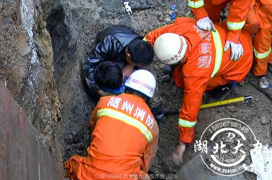 一名工人在旁邊不停地呼叫被埋壓者,消防戰(zhàn)士不停地用雙手往外挖刨泥土。時間在一分一秒地過去,被埋壓者的身體漸漸露了出來。