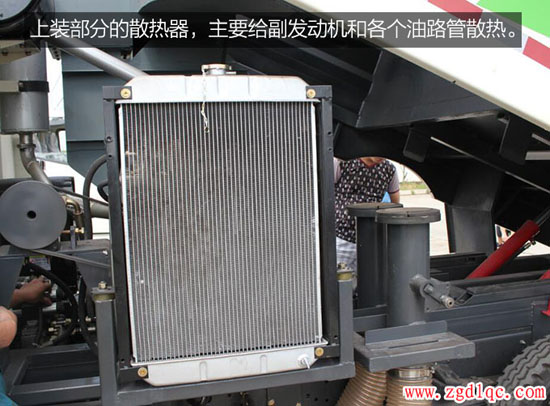 上裝部分的散熱器,主要給副發(fā)動(dòng)機(jī)和各個(gè)油路管散熱。夏季溫度高,吸塵車工作時(shí)都會(huì)用到散熱器。選用國(guó)內(nèi)品牌散熱器,使用壽命長(zhǎng)、工作效率高。
