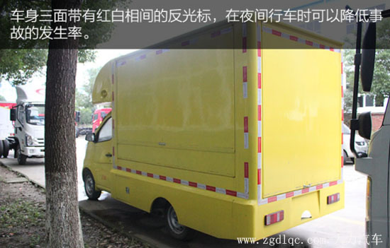 車身三面采用紅白相間的反光標(biāo),在一定的光源照射下能產(chǎn)生強(qiáng)烈的反光效果,在夜間行駛時(shí)具有警醒的作用,可以達(dá)到降低事故的發(fā)生率,保障我們的行車安全。
