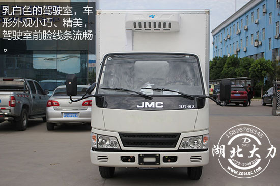 江鈴順達冷藏車的駕駛室采用流線型設計,外觀方方正正,各邊棱角分明。車窗面積擴大,為駕駛員提供了良好的駕駛視野。霧燈、大燈、轉(zhuǎn)向燈一字排開安裝,梯形設計更美觀。江鈴順達的經(jīng)典LOGO標志“JMC”位于整個駕駛室的正中間,標志明顯易見。