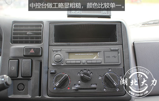 全車唯一的不足的地方就是中控臺檔次略低,四周沒有任何一點搭配和修飾。位于最上面的小儲物盒可以放置司機隨身攜帶的小物品,儲物盒下面是USB接口和收音機,收音機或許是司機長途駕駛的最好陪伴物。