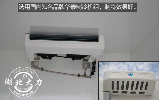 選用國內(nèi)知名品牌華泰C300冷藏機組,廂體內(nèi)最低溫度可達到零下5度。制冷機組冷藏效果好,降溫快,提高了送貨司機的工作效率。