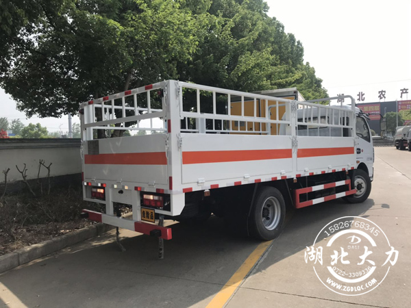 隨底盤選裝駕駛室外觀變化,駕駛室前面罩. 前保險桿,前組合燈具,前霧燈,廂體選裝無柵欄.運輸具有獨立罐(瓶)裝液化石油氣.乙炔.乙烯.二氧化碳.壓縮氬(氧.氮.氫.甲烷.壓縮空氣)等壓縮氣體,類項號2.1,2.2.該車運輸?shù)臍馄渴⒀b介質(zhì)是2.1項易燃氣體時,車輛左.右側(cè)及后部黏貼”易燃氣體”牌,該車運輸?shù)臍馄恐惺⒀b介質(zhì)是2.2項非易燃無毒氣體時,車輛左.右側(cè)及后部黏貼”不燃氣體”牌. 廂體顏色可變化. 側(cè)面及后下部防護裝置材料為Q235-A,與車架采用焊接連接.后下部防護裝置斷面尺寸(mm):120×60,離地高度:490mm
