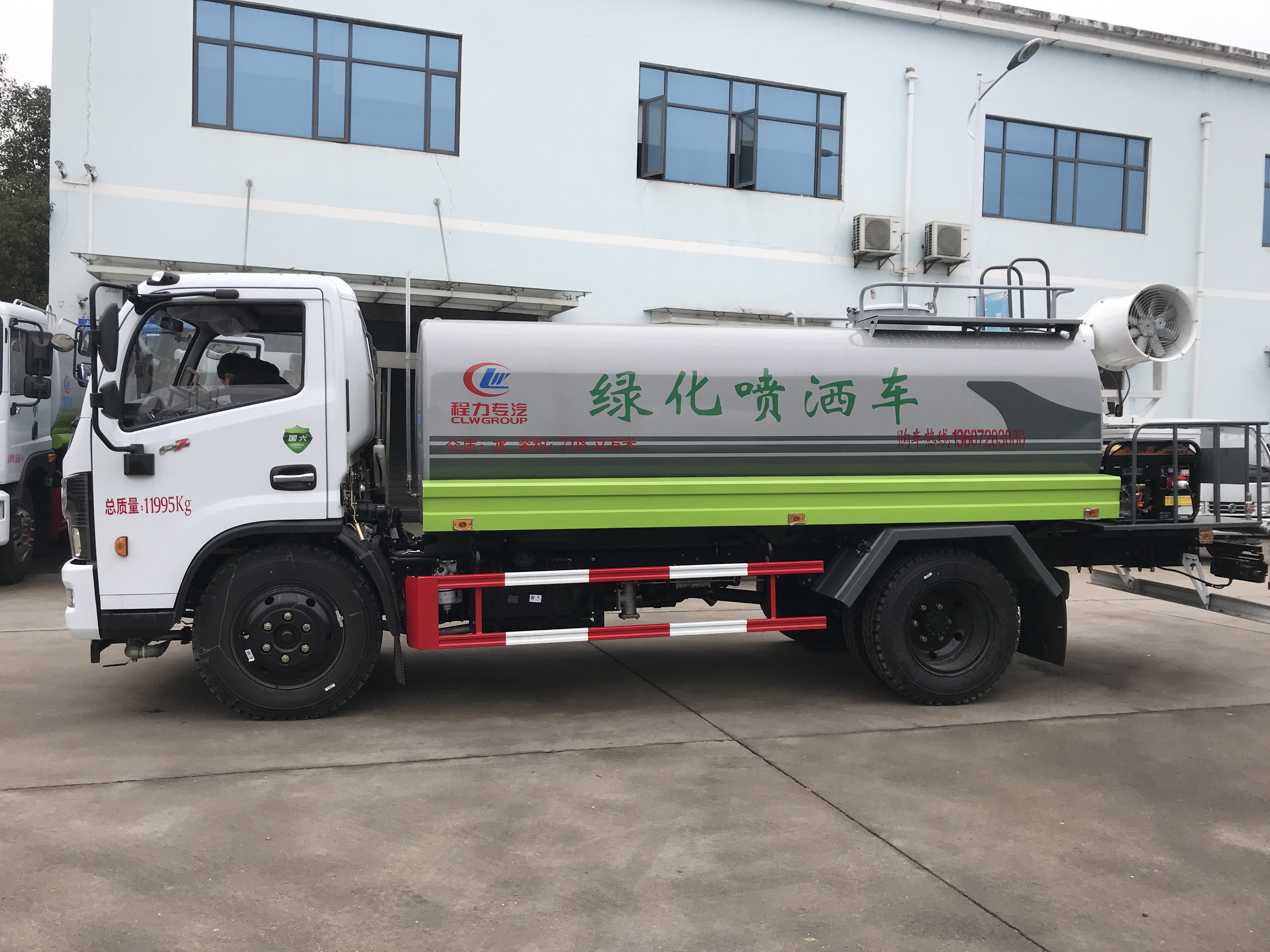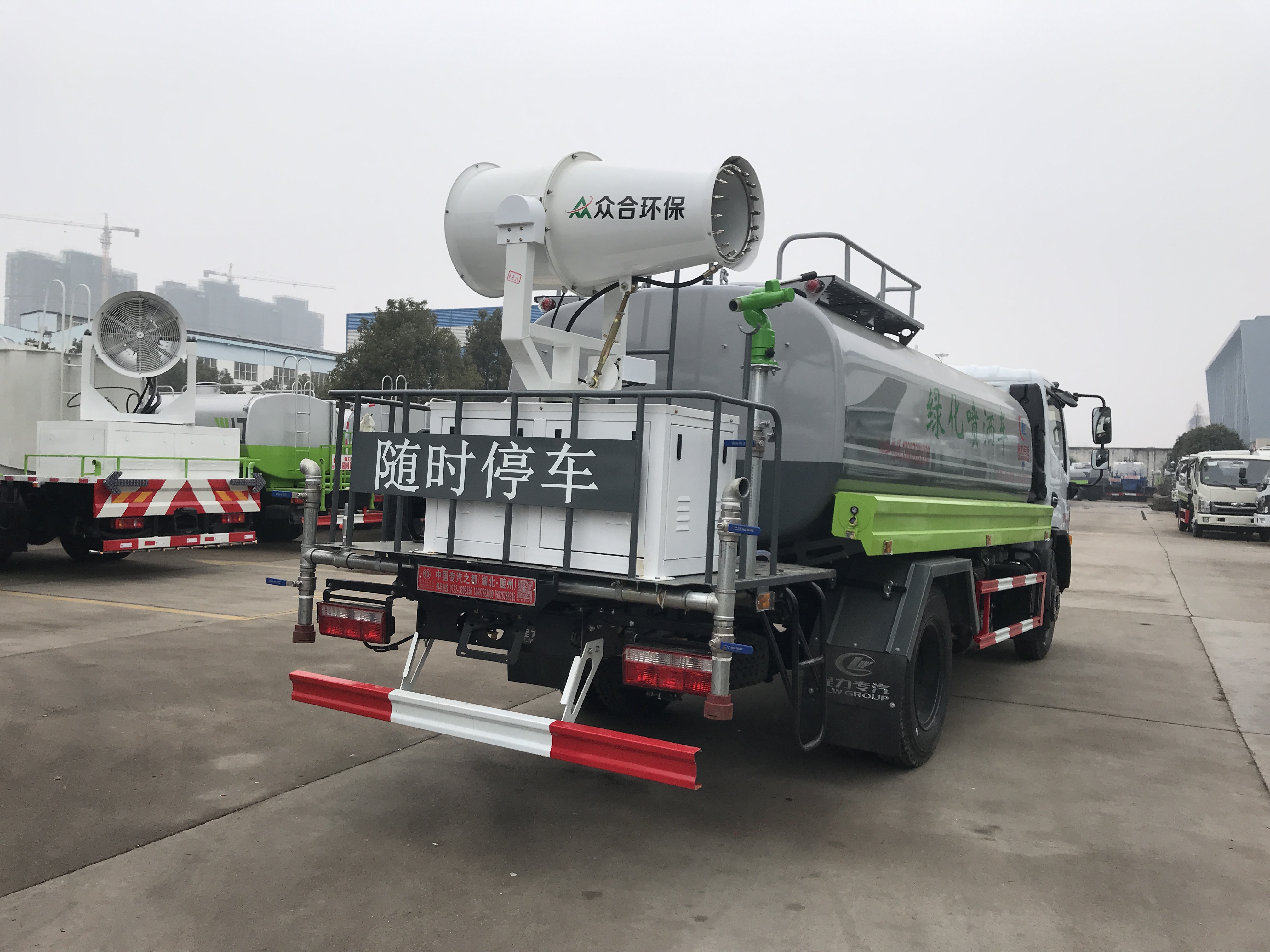 上裝配置:罐體采用武鋼Q235優(yōu)質(zhì)碳鋼板制作,前沖(噴)后灑,帶側(cè)噴,罐體后帶工作平臺,帶水槍,可連續(xù)調(diào)成直沖狀、大雨、小雨、毛毛雨,帶安全護欄,配備灑水車專用灑水泵,泵可自吸自排,安裝過濾網(wǎng),帶消防接口,可通過消防栓進水,帶自流閥,帶灑水音樂喇叭,配備兩根等長輸水管,加裝30米霧炮(帶汽油發(fā)電機組)。