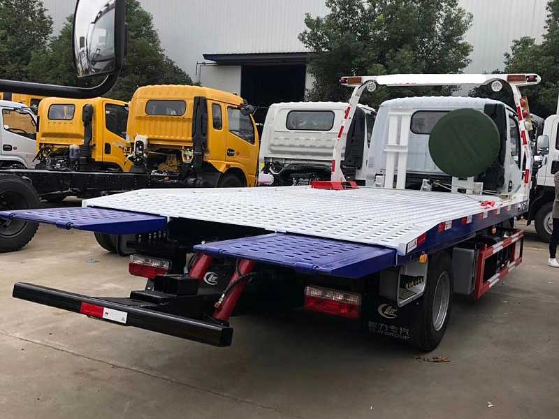 東風多利卡D6_5.2米一拖二應急救援清障車,應急救援清障車能夠快速、及時、安全地清除道路上需要救援的全車,及時的疏導道路交通。全自動夾緊裝置,車輛小巧,進地下車庫非常符合。應急救援清障車是指裝有道路搶險作業(yè)裝備的專用汽車。后托臂可牽引全車的重量為2T。承載有力,動力強大,運輸效率高。在多種地庫皮卡車上進行改裝。