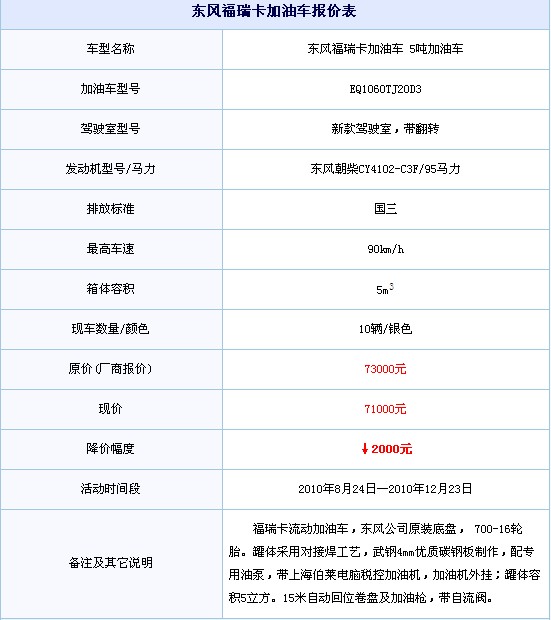 東風(fēng)福瑞卡加油車活動期間讓利2000元