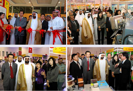 中國(guó)駐阿聯(lián)酋大使 高育生 先生、中國(guó)駐阿聯(lián)酋總領(lǐng)事 詹京保 先生、中國(guó)商務(wù)部國(guó)際經(jīng)濟(jì)技術(shù)交流中心副主任趙中屹 先生、沙迦工商會(huì)副主席穆罕默德·蘇爾坦·本·胡瓦鄧( Mr. Mohammed Sultan Bin Houwaden )先生為本屆交易會(huì)開(kāi)幕式剪彩。