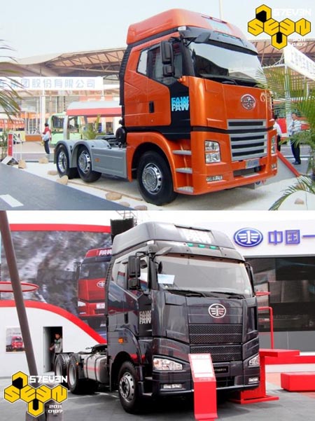 先讓我們看看2011年的J6H量產(chǎn)版與2005年的J6H概念重卡(以下簡(jiǎn)稱J6HC)有何區(qū)別。