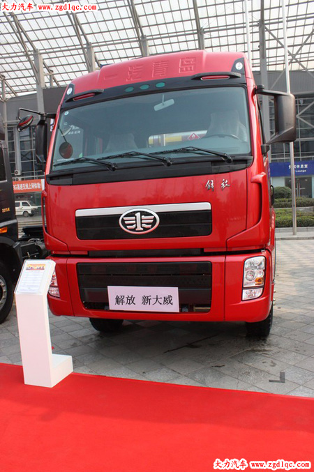 車輛型號為CA4226P2K2T3EA81的解放新大威6X2牽引車采用新大威平地板高頂加長全浮天窗駕駛室,顏色同樣為靚麗的水晶紅;動力搭載濰柴336馬力發(fā)動機,滿足國III排放標準;選用一汽 10檔變速箱;斯太爾后橋。