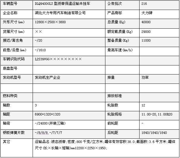 瀝青保溫運輸半掛車技術(shù)參數(shù)
