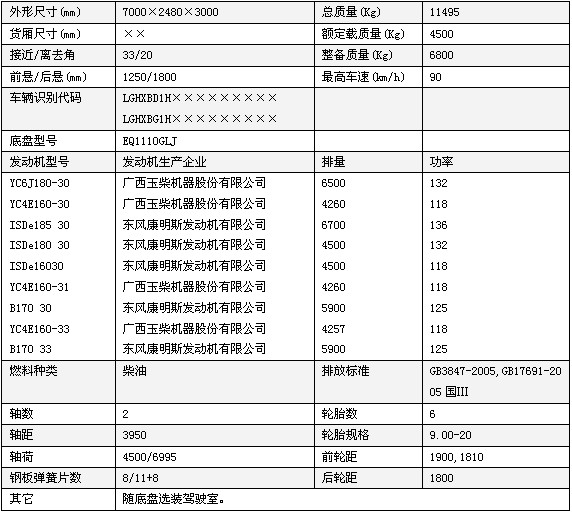 東風(fēng)145掃路車  底盤型號(hào):EQ1110GLJ 額定質(zhì)量:4500