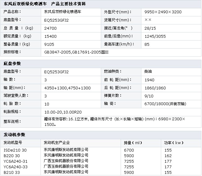 東風(fēng)后雙橋綠化噴灑車  底盤型號:EQ5253GFJ2 額定質(zhì)量:15400