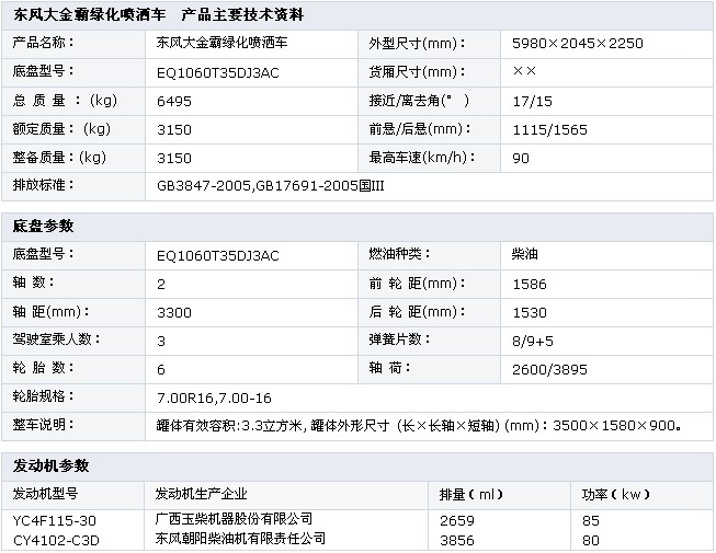 東風(fēng)大金霸綠化噴灑車  底盤型號:EQ1060T35DJ3AC 額定質(zhì)量:3150