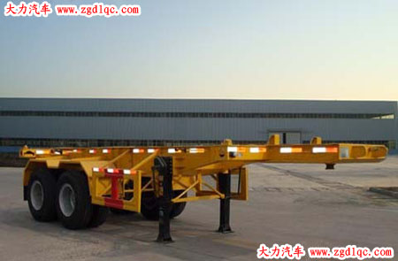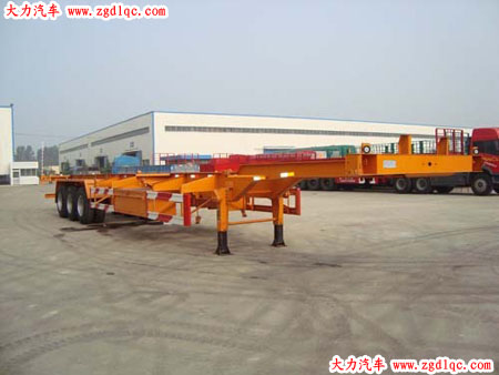 載貨部位為框架結構且無地板,專門運輸集裝廂的半掛車,第一第三車是拉散貨的,中間拉配貨的全封閉箱車!
