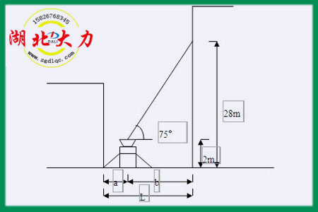 b=(28-2)/tg75°=6.9m (回轉(zhuǎn)臺高度按2m計)